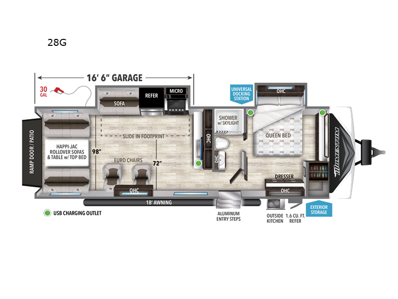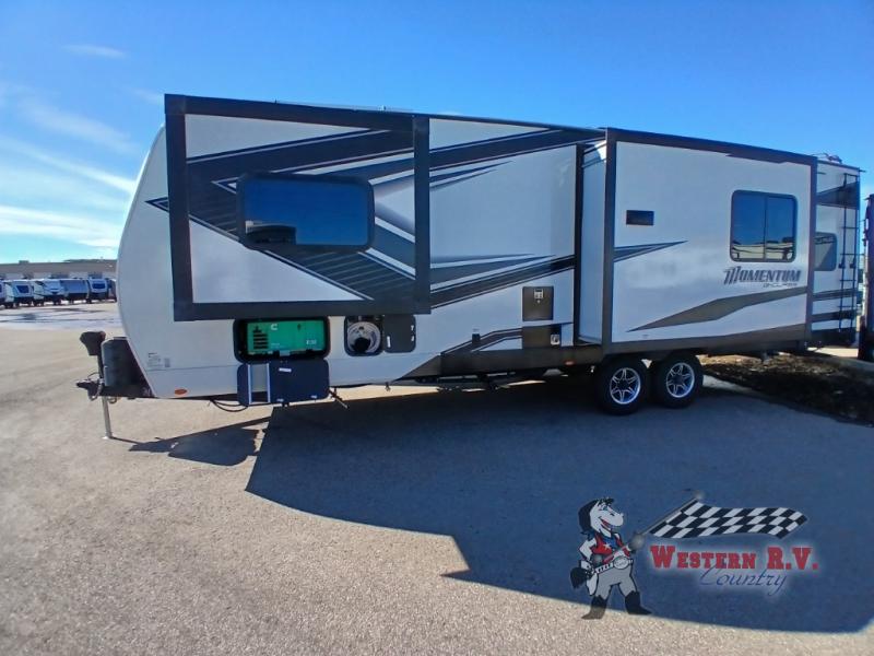 Introducing the 2022 Grand Design Momentum G-Class 28G Toy Hauler, a premium RV designed for adventurers who demand both luxury and functionality. With its robust build and thoughtful design, this RV is perfect for those who wish to explore the great outdoors without sacrificing comfort. Measuring an impressive 28 feet in length, this toy hauler offers ample space for both living and storage, making it an ideal choice for families or groups seeking a versatile travel companion.