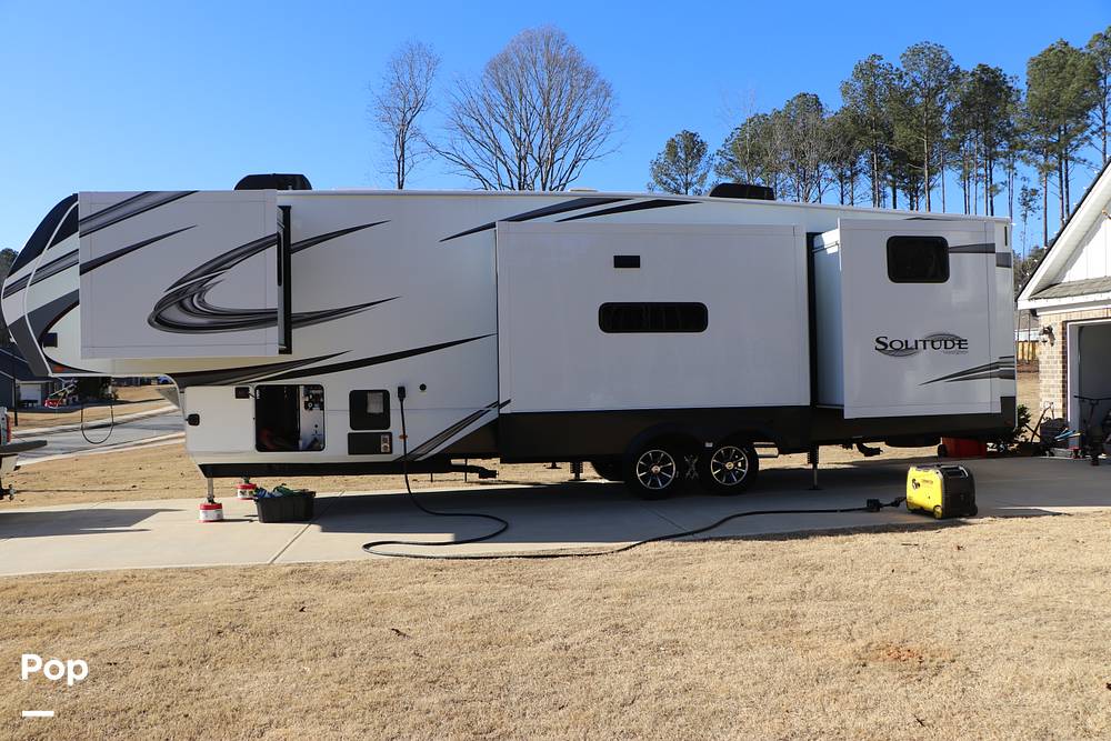 This fifth wheel also boasts a range of practical features, including multiple slide-outs for expanded living space, a spacious bathroom with premium fixtures, and a master bedroom that offers a private sanctuary. The exterior is equally impressive, with durable construction and sleek design, ensuring both style and functionality. Whether you're embarking on a cross-country journey or a weekend getaway, the 2022 Grand Design Solitude 3740 BH Fifth Wheel promises an unparalleled travel experience, combining luxury, comfort, and adventure in one remarkable package.