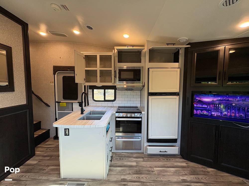 Built with Jayco's renowned craftsmanship, the 24RE Fifth Wheel is not only aesthetically pleasing but also durable and reliable. Its robust construction ensures longevity, while the sleek design provides an aerodynamic advantage for smoother towing. Whether you're embarking on a weekend getaway or an extended road trip, this RV promises a seamless and enjoyable journey. Experience the freedom of the open road with the 2022 Jayco 24RE Fifth Wheel, where every detail is tailored to enhance your travel experience.
