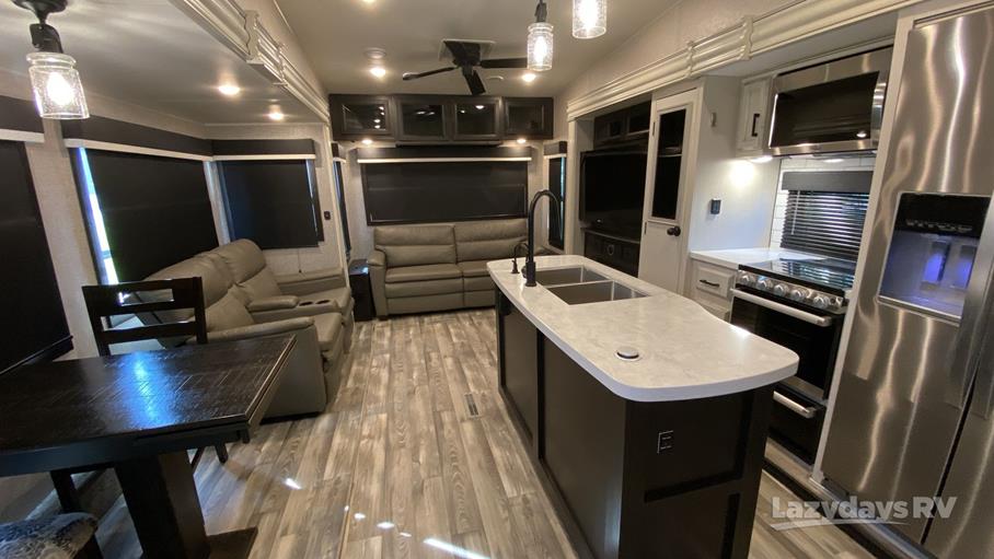 Measuring approximately 30 feet in length, the Jayco Eagle FW 321RSTS offers plenty of room to stretch out and relax. The three slide-outs significantly expand the living space, providing a roomy interior that feels more like a cozy home than an RV. Inside, you'll find a beautifully appointed living area with plush seating, a modern kitchen equipped with top-of-the-line appliances, and a dining area perfect for enjoying meals together. The master bedroom offers a peaceful retreat with ample storage and a comfortable bed, ensuring restful nights after days of adventure.