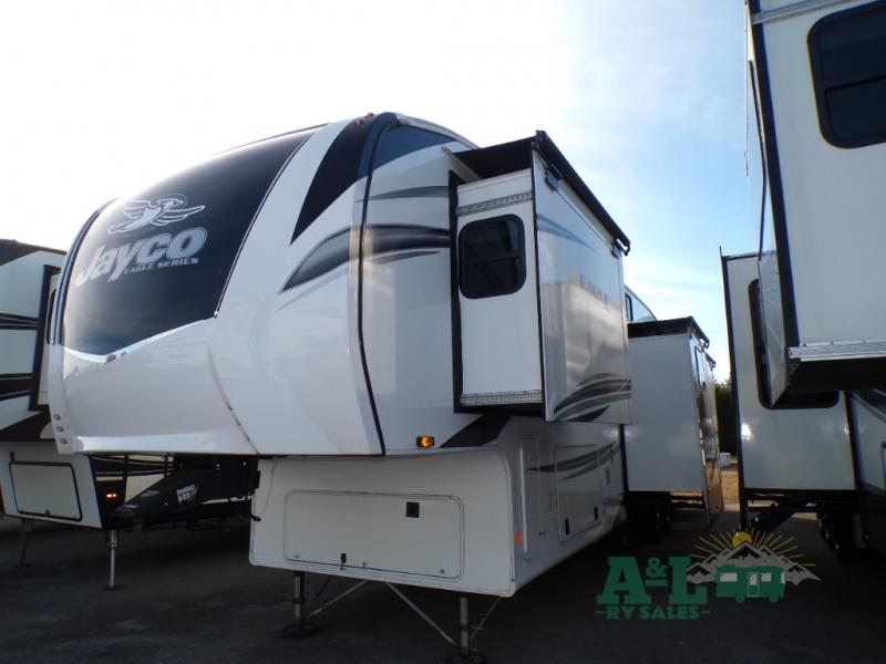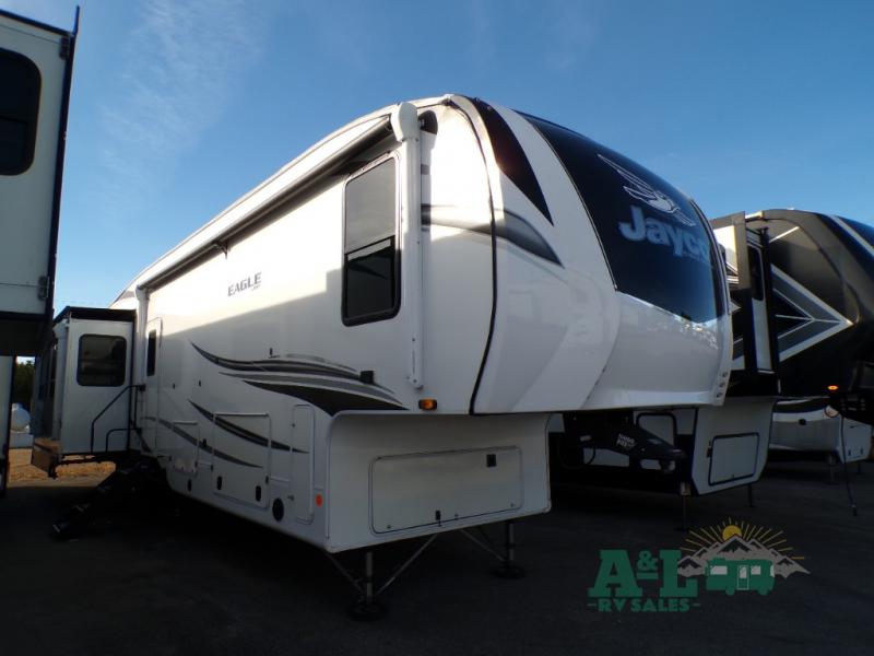 Introducing the 2022 Jayco Eagle 355MBQS Fifth Wheel, a pinnacle of luxury and functionality in the world of recreational vehicles. This meticulously crafted RV is designed to elevate your travel experience, offering an exceptional blend of comfort, space, and durability. With four expansive slide-outs, this model provides an unparalleled living area, ensuring ample room for relaxation and entertainment. Measuring an impressive 34 feet in length, the Jayco Eagle is engineered to accommodate up to eight occupants comfortably, making it an ideal choice for families or groups seeking adventure without sacrificing comfort.