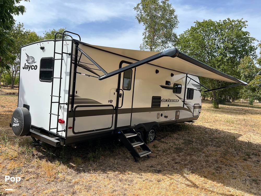 Outside, the Jay Feather 25RB boasts a sleek and durable exterior, ready to withstand all your travel escapades. With ample storage space, you can bring along all your gear, from bikes to fishing rods, ensuring you're prepared for whatever the journey has in store. Whether you're planning a weekend getaway or an extended road trip, this travel trailer is your ultimate companion for making unforgettable memories. Don't miss out on the chance to own this fantastic RV—your next adventure awaits!