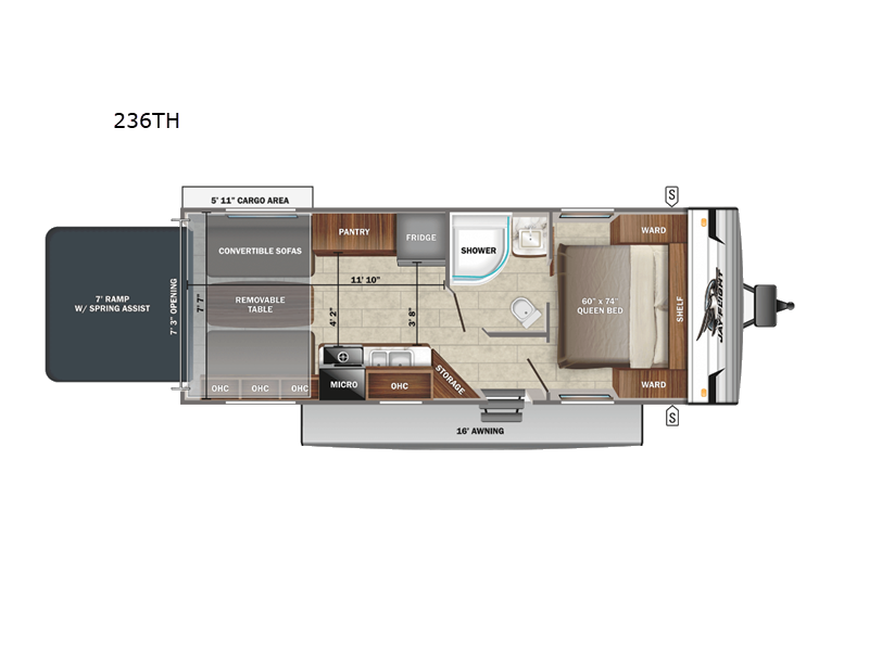 Looking for the perfect adventure companion? Check out this 2022 Jayco Jay Flight SLX 8 236TH ToyHauler! This beauty is designed for those who crave the open road and the thrill of the outdoors. With a length of 23 feet, it's compact enough to maneuver easily, yet spacious enough to bring along all your favorite toys and gear. Weighing in at just 2,197 kg, it's lightweight and easy to tow, making it a breeze to take on any journey.