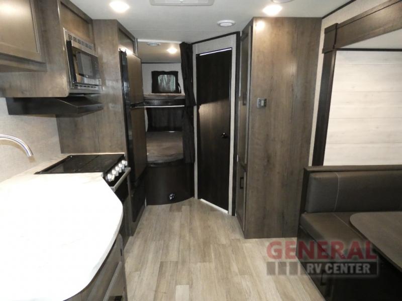Step inside and be greeted by a thoughtfully designed interior that can comfortably sleep up to eight people. The single slide-out expands the living space, providing ample room for relaxation and entertainment. The well-appointed kitchen features modern appliances and plenty of storage, ensuring you can prepare delicious meals no matter where your journey takes you. The cozy sleeping quarters, including a queen bed and bunk beds, offer a restful retreat after a day of exploration.