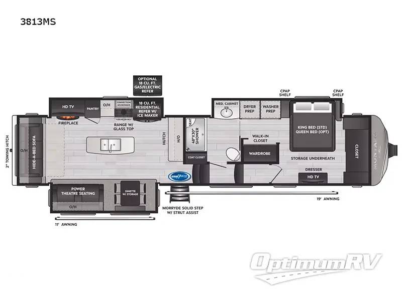 Inside, you'll find a beautifully appointed living area that can comfortably sleep up to four people. The Montana 3813MS features a master suite with a king-size bed, ensuring restful nights after a day of exploration. The spacious living room boasts plush seating and a state-of-the-art entertainment system, perfect for unwinding or hosting friends. The fully equipped kitchen, complete with modern appliances and ample storage, allows you to prepare gourmet meals on the go, while the elegant dining area provides a cozy spot for enjoying them.