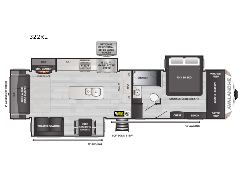 Weighing in at approximately 5,539 kilograms, the Keystone Avalanche 322RL is engineered for stability and ease of towing, providing peace of mind on every adventure. Its robust construction and innovative design make it a reliable choice for both seasoned RV enthusiasts and newcomers alike. Don't miss the opportunity to own this exceptional fifth wheel that combines luxury, functionality, and the freedom to explore. Embrace the open road and create unforgettable memories with the Keystone RV Avalanche 322RL. Your next adventure awaits!