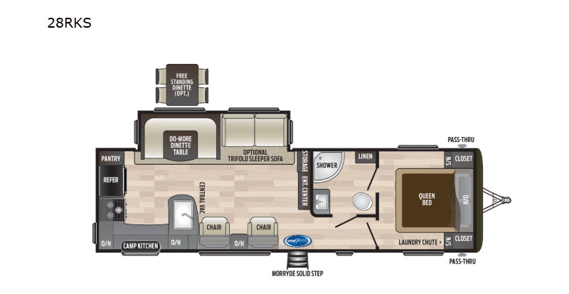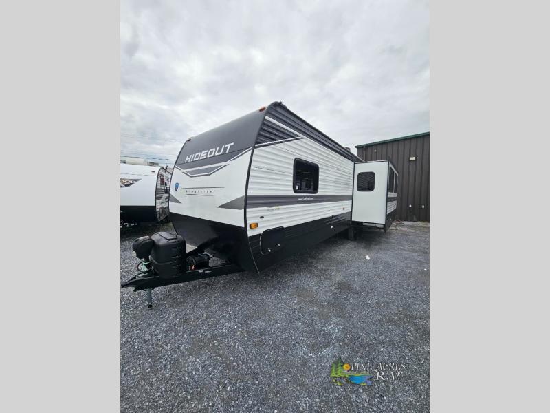 Step inside and be greeted by a welcoming interior that can comfortably sleep up to four people. Whether you're planning a romantic getaway or a family trip, the Hideout 28RKS has you covered. The single slide-out expands your living space, offering a cozy area to relax and unwind after a day of exploration. The well-appointed kitchen is equipped with modern appliances, allowing you to whip up your favorite meals with ease. Enjoy your culinary creations at the spacious dining area, or take the feast outside and dine under the stars.