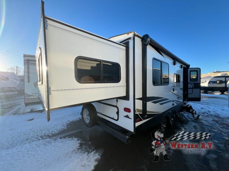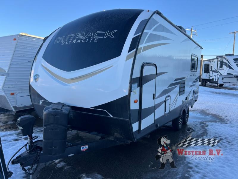 Measuring approximately 19 feet in length, the Outback Ultra Lite is compact enough for easy towing yet spacious enough to ensure comfort on the road. Weighing in at just 2,221 kilograms, this travel trailer is designed for efficiency and ease of handling, making it an ideal choice for both seasoned travelers and RV newcomers. Its lightweight design doesn't compromise on durability or style, ensuring you travel in both safety and elegance.