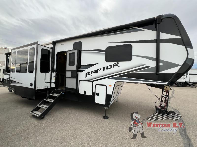 Discover the ultimate adventure companion with the 2022 Keystone RV Raptor 352 Fifth Wheel. This impressive RV is designed for those who crave comfort and convenience on the road. With three slide-outs, it offers expansive living space, ensuring you and your family can relax and enjoy every journey. The Raptor 352 is perfect for larger groups, comfortably sleeping up to eight people, making it ideal for family vacations or trips with friends.
