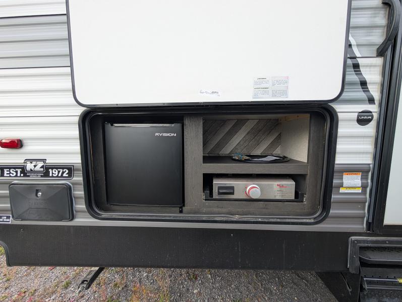 Outside, the KZ Sportsmen 332BHKSE continues to impress with its durable construction and practical features. The exterior includes a large awning for shaded relaxation, an outdoor kitchen for alfresco dining, and ample storage compartments for all your gear. With its sleek design and reliable performance, this travel trailer is ready to take you on countless adventures. Experience the freedom of the open road with the 2022 KZ Sportsmen 332BHKSE, where every journey becomes a cherished memory.
