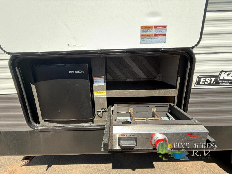 Introducing the 2022 KZ Sportsmen SE 271BHKSE Travel Trailer, a perfect blend of comfort and functionality designed to elevate your camping experience. This meticulously crafted travel trailer boasts a spacious interior with a single slide-out, providing ample room for relaxation and entertainment. Measuring approximately 25 feet in length, this trailer offers a compact yet comfortable living space that is easy to maneuver and park, making it an ideal choice for both seasoned travelers and those new to the RV lifestyle.