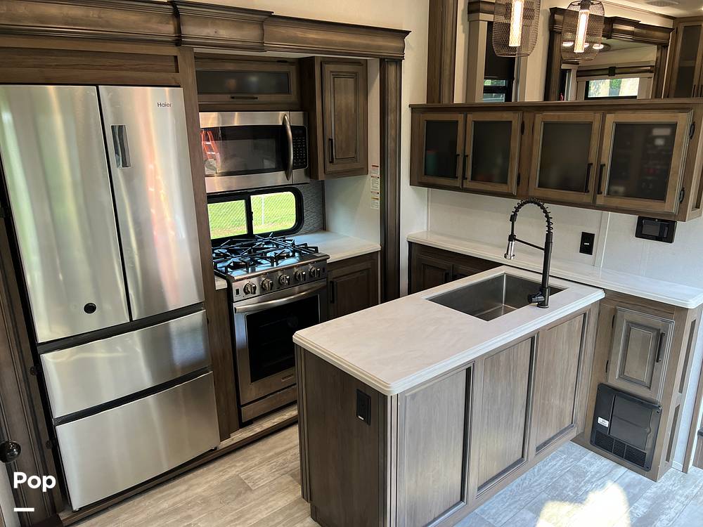 In addition to its impressive interior, the Sanibel 3802WB is designed with practicality in mind. The RV includes ample storage solutions to accommodate all your travel essentials, ensuring a clutter-free environment. The exterior is equally impressive, with durable construction and sleek design elements that enhance both aesthetics and functionality. Whether embarking on a weekend getaway or an extended journey, the 2022 Prime Time Sanibel 3802WB Fifth Wheel promises an unparalleled travel experience, combining luxury, comfort, and convenience in one remarkable package.