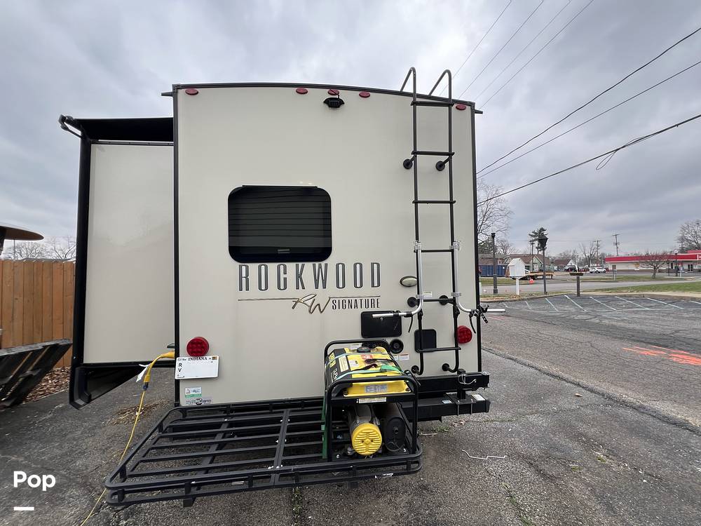 Step inside to find a thoughtfully designed interior that combines comfort and functionality. The Rockwood Signature Ultra features a well-equipped kitchen with modern appliances, allowing you to prepare meals with ease. The cozy living area provides a perfect spot to relax and unwind, complete with plush seating and entertainment options. Sleeping arrangements are versatile, with multiple bunk beds, a convertible dinette, and a comfortable master bedroom, ensuring everyone has their own space to rest.
