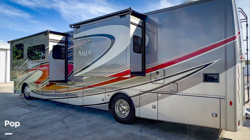 Step inside to find a beautifully appointed interior featuring high-end finishes and thoughtful design. The Aria Class A boasts a fully equipped kitchen with modern appliances, making meal prep a breeze, whether you're whipping up a quick breakfast or a gourmet dinner. The cozy living area invites you to relax with plush seating and a state-of-the-art entertainment system, perfect for unwinding after a day of exploration. The sleeping arrangements are equally impressive, with a master suite that promises restful nights and additional sleeping spaces that ensure everyone has their own cozy nook.