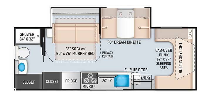 Inside, the Quantum MB24 comfortably sleeps up to four people, making it ideal for family getaways or a cozy retreat for two. The intelligently designed interior maximizes space, featuring a well-appointed kitchen with modern appliances, a stylish dining area, and a comfortable sleeping arrangement. The luxurious bathroom provides all the comforts of home, ensuring you can freshen up after a day of exploration. Ample storage solutions throughout the RV mean you can bring along all your essentials and more.