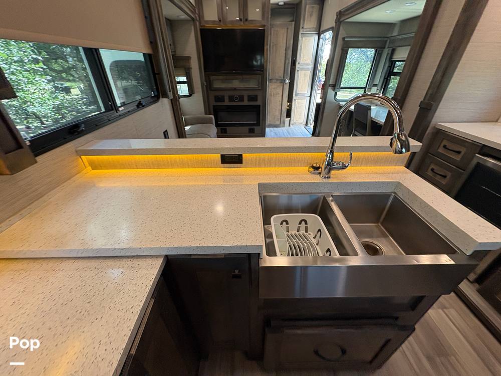 Step inside to find a spacious and elegantly appointed living area that comfortably sleeps four. The high-quality furnishings and thoughtful layout ensure that every journey is as relaxing as it is exciting. The kitchen is a chef's dream, equipped with top-of-the-line appliances and ample counter space, making meal preparation a breeze. The cozy dining area is perfect for enjoying meals with family or friends, while the plush seating in the living room invites you to unwind after a day of exploration.
