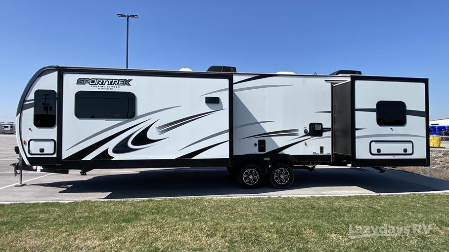 Introducing the 2022 Venture RV SportTrek TT Travel Trailer, a perfect blend of modern design and functional living space, ideal for those who seek adventure without compromising on comfort. This meticulously crafted travel trailer spans 34 feet in length, offering ample room for family and friends to enjoy the great outdoors in style. With a dry weight of approximately 3,175 kilograms, it is designed for easy towing, ensuring a smooth and stable journey to your favorite destinations.