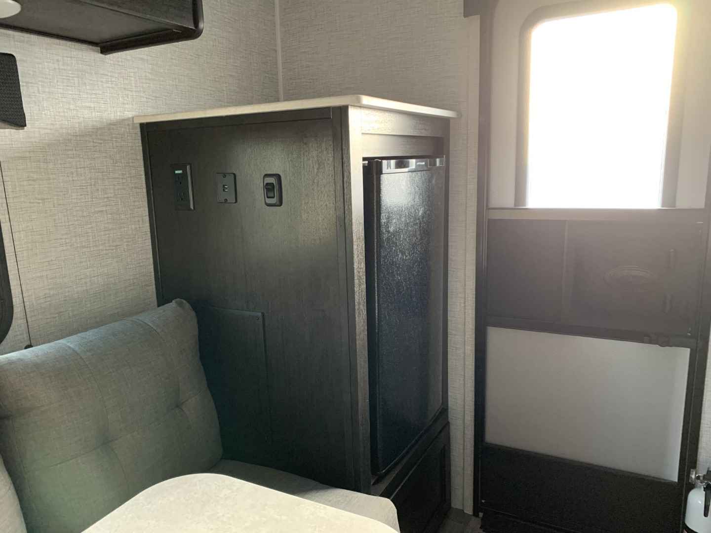 Inside, the Bushwhacker+ 15RE is all about maximizing space and comfort for two. The cozy sleeping area ensures you’ll have a restful night after a day of exploring. Whether you’re parked by a serene lake or nestled in a forest, you’ll have all the essentials right at your fingertips. The interior is thoughtfully designed to make the most of every inch, offering storage solutions and amenities that make life on the road a breeze.