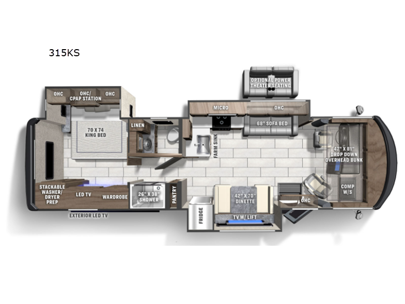 Equipped with a generous 303-liter fuel capacity, the Mirada 315KS offers extended travel range, allowing you to focus on the journey rather than frequent fuel stops. Whether you're planning a cross-country adventure or a weekend escape, this RV is your perfect companion. Don't miss the opportunity to own a piece of luxury on wheels—experience the freedom and excitement of the open road with the 2023 Coachmen RV Mirada 315KS Class A. Your dream adventures await!