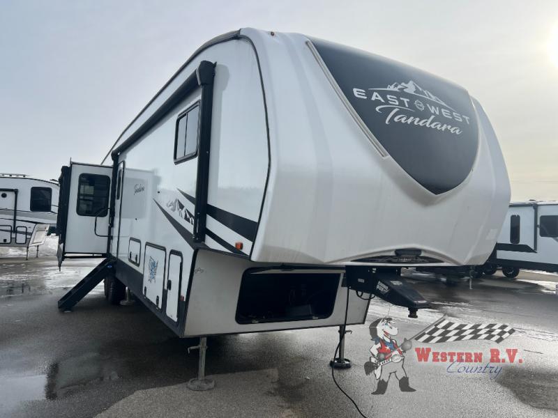 Beyond its spacious interior, the Tandara 385MB is equipped with state-of-the-art features that enhance your travel experience. From the fully equipped kitchen with premium appliances to the luxurious bathroom facilities, every detail is crafted to provide convenience and comfort. The RV's advanced climate control system ensures a pleasant environment in any weather, while ample storage solutions keep your belongings organized and accessible. Experience the ultimate in mobile living with the 2023 EAST TO WEST Tandara 385MB Fifth Wheel, where every journey becomes an unforgettable adventure.
