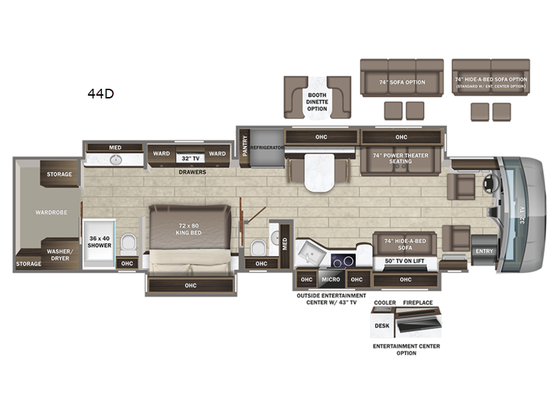 Step inside and be amazed by the spacious interior, thanks to its four slide-outs that maximize living space. The Aspire 44D comfortably sleeps four, making it ideal for family trips or a getaway with friends. The thoughtfully designed layout includes a fully equipped kitchen, a cozy living area, and a luxurious bathroom, ensuring you have all the comforts of home on the road. With a fuel capacity of 568 liters, you can travel further without frequent stops, allowing you to focus on the journey ahead.