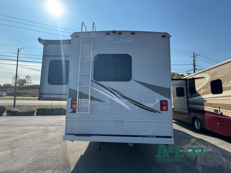 The Flair 28A features two slide-outs, expanding your living space to accommodate up to seven sleepers comfortably. Whether you're traveling with family or friends, everyone will appreciate the ample room and thoughtful design. The interior is equipped with all the essentials, ensuring a cozy and convenient experience on the road. From the fully-equipped kitchen to the comfortable sleeping arrangements, every detail is crafted for your comfort.