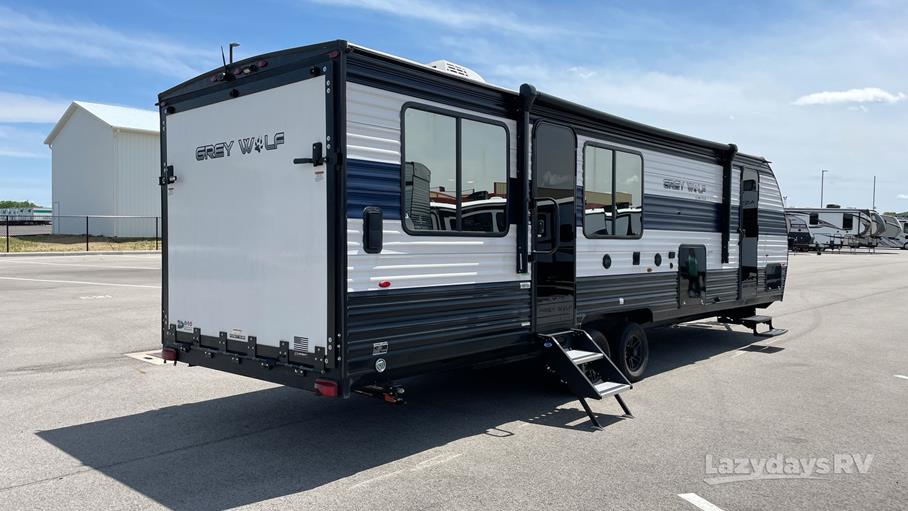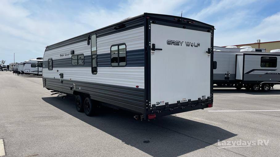 Introducing the 2023 Forest River Grey Wolf 26MBRR Travel Trailer, a perfect blend of comfort, style, and functionality for your next adventure. This travel trailer, measuring 30 feet in length, is designed to cater to both seasoned travelers and those new to the RV lifestyle. With a sleek exterior and modern amenities, the Grey Wolf 26MBRR is ready to elevate your camping experience.