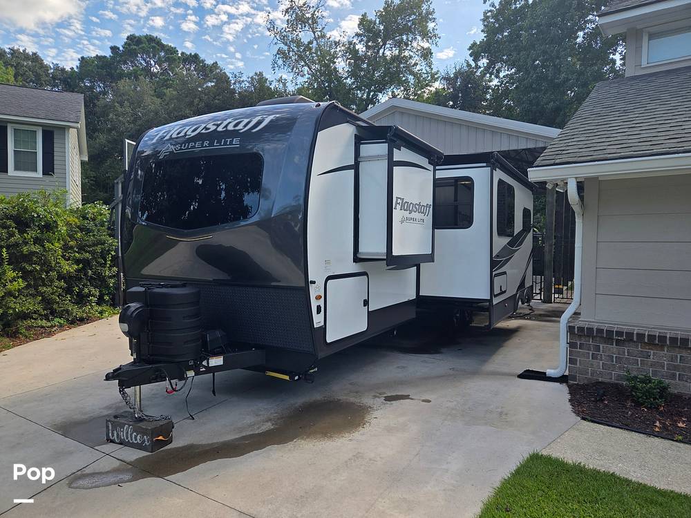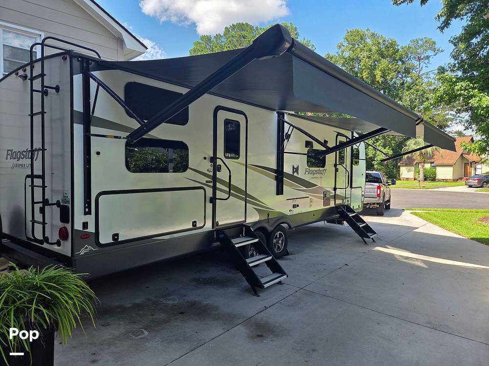 Introducing the 2023 Forest River Flagstaff Super Lite 27BHWS Travel Trailer, a pinnacle of modern design and functionality, perfect for families and adventurers alike. This exceptional travel trailer offers a spacious and comfortable environment, capable of accommodating up to eight individuals, making it ideal for family vacations or group excursions. With a length of 27 feet, this trailer provides ample space without compromising on maneuverability, ensuring a seamless travel experience.