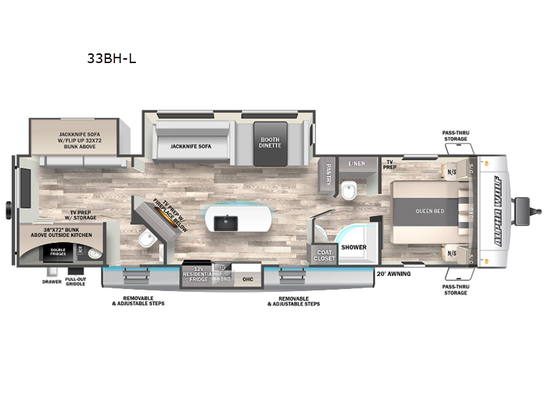 Weighing in at around 3,626 kilograms, the Cherokee Alpha Wolf is built for easy towing, ensuring a smooth and stress-free travel experience. Its modern design and high-quality finishes make it a standout choice for those who appreciate both functionality and style. Embark on your next adventure with confidence and comfort in the 2023 Forest River RV Cherokee Alpha Wolf 33BH-L Travel Trailer – where every journey becomes a cherished memory.