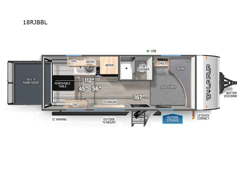 Discover the ultimate blend of adventure and comfort with the 2023 Forest River RV Cherokee Wolf Pup Black Label 18RJBBL Toy Hauler. This compact yet spacious RV is designed for those who crave the thrill of the open road without sacrificing the comforts of home. Measuring approximately 18 feet in length, this versatile toy hauler is perfect for families or small groups, comfortably sleeping up to four people. Whether you're embarking on a weekend getaway or an extended road trip, this RV offers the perfect balance of functionality and style.