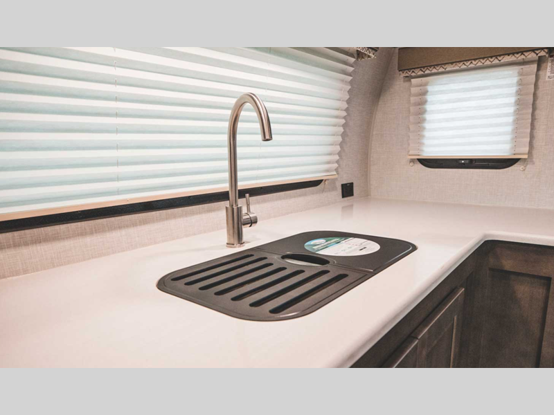 This travel trailer features two slide-outs, giving you extra space to stretch out and relax. Whether you're cooking up a storm in the fully-equipped kitchen or lounging in the cozy living area, you'll appreciate the thoughtful layout and quality finishes. The trailer comfortably sleeps two, making it perfect for romantic getaways or solo retreats. At just over 6,000 pounds (2,746 kg), it's lightweight enough for easy towing, yet sturdy enough to handle all your adventures.