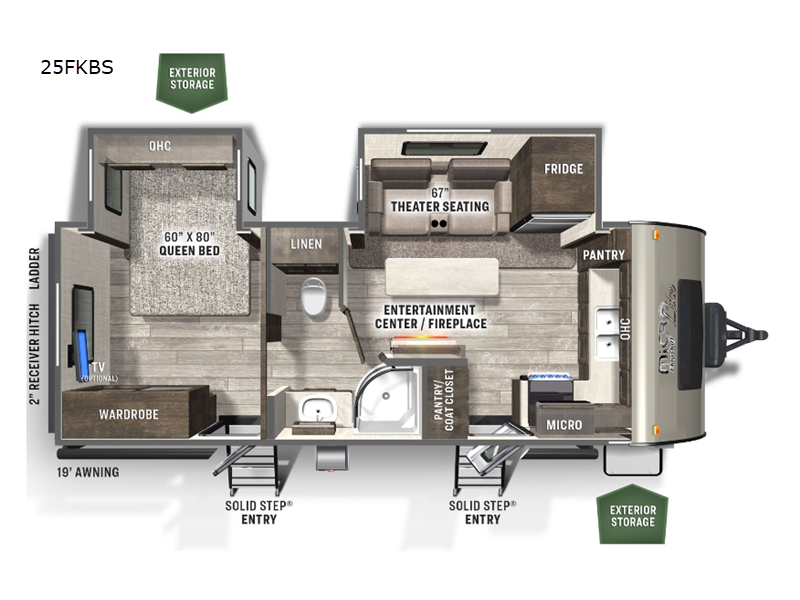 Measuring 21 feet in length, this RV is compact enough to navigate through tight spots, yet spacious enough to provide all the comforts of home. Whether you're parked by a serene lake or nestled in a forest, the Flagstaff Micro Lite 25FKBS ensures you have everything you need for a memorable trip. So, pack your bags and hit the road with this fantastic travel trailer—your next adventure awaits!
