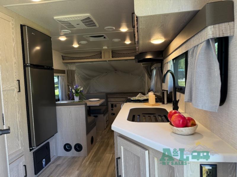 Measuring approximately 18 feet in length, the Flagstaff Shamrock 19 Hybrid is compact yet spacious, making it easy to maneuver while providing ample living space. With a weight of just 1,951 kilograms, it is lightweight enough to be towed by a variety of vehicles, ensuring a smooth and efficient journey. The hybrid design combines the best of both worlds, offering the convenience of a traditional RV with the added space and flexibility of expandable tent ends.