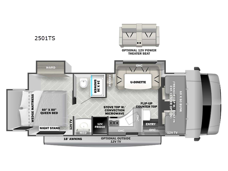 Introducing the 2025 Forest River RV Forester Classic 2501TS Ford Class C, a remarkable blend of comfort, functionality, and modern design. This exceptional motorhome is engineered to elevate your travel experiences, offering a spacious and versatile living environment. With three strategically designed slide-outs, this RV maximizes interior space, ensuring ample room for relaxation and entertainment. Measuring approximately 23 feet in length, the Forester Classic 2501TS is compact enough for easy maneuverability while providing all the amenities needed for a comfortable journey.