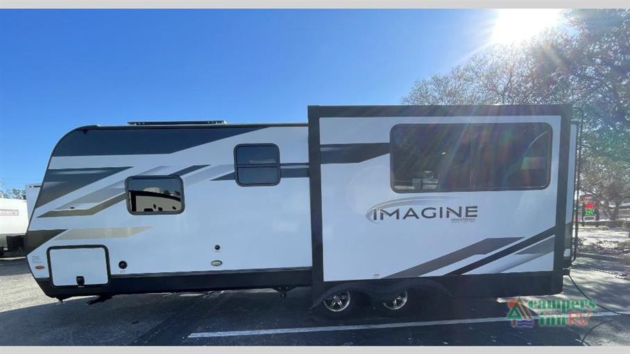 Discover the perfect blend of comfort and adventure with the 2023 Grand Design Imagine 2500RL Travel Trailer. This modern marvel is designed for those who crave the open road without sacrificing the comforts of home. With a single slide-out, this travel trailer expands to offer a spacious interior that comfortably sleeps up to six people, making it ideal for family getaways or trips with friends.