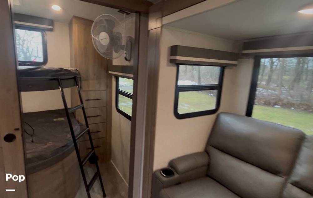 Step inside and be greeted by a warm and inviting interior that feels just like home. The Imagine 2910BH boasts a smart layout that includes a private master bedroom, double-over-double bunk beds, and a convertible dinette and sofa, ensuring everyone has a comfortable place to rest. The fully-equipped kitchen features modern appliances and ample counter space, making meal prep a breeze whether you're whipping up a quick breakfast or a gourmet dinner. Plus, the spacious bathroom with a shower offers all the conveniences of home, even when you're miles away from civilization.