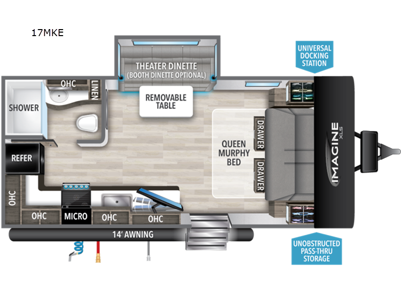 Introducing the 2023 Grand Design Imagine XLS 17MKE Travel Trailer, a compact yet spacious solution for your travel adventures. With a length of 18 feet, this travel trailer is designed to offer the perfect balance of comfort and convenience, making it an ideal choice for both seasoned travelers and those new to the RV lifestyle. Its sleek design and high-quality construction ensure durability and reliability on the road, while its modern amenities provide a home-like experience wherever you go.