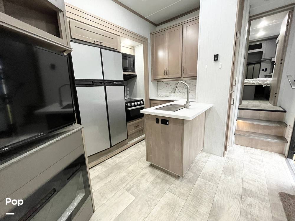 The Momentum 320G doesn't just excel in comfort; it's also built for adventure. With its robust construction and innovative design, this fifth wheel is ready to tackle any terrain. The spacious garage area is perfect for storing bikes, kayaks, or any other gear you need for your outdoor pursuits. Plus, with its advanced climate control system, you can enjoy your travels in comfort, no matter the weather. Embark on your next adventure with the 2023 Grand Design Momentum 320G Fifth Wheel and experience the freedom of the open road like never before!