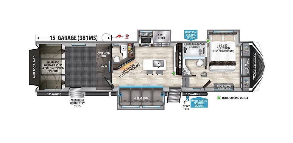 Beyond its stunning interior, the Grand Design Momentum 381MS is built for adventure. Its robust construction and advanced suspension system ensure a smooth ride, even on the most rugged terrains. With plenty of storage space for all your gear, you can bring along everything you need for your adventures. Whether you're heading to the mountains, the beach, or anywhere in between, this fifth wheel is your ticket to unforgettable experiences. Don't miss the opportunity to own this exceptional RV and start creating memories that will last a lifetime. Act now and embrace the freedom of the open road with the 2023 Grand Design Momentum 381MS Fifth Wheel.