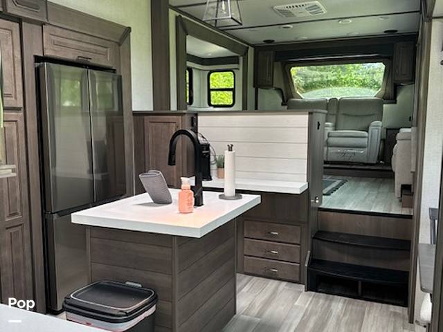 Step inside and be greeted by a beautifully appointed interior that combines modern elegance with practical functionality. The front living area is a true highlight, featuring plush seating and a cozy atmosphere perfect for unwinding after a day of exploration. The fully equipped kitchen boasts top-of-the-line appliances, ample counter space, and a dining area that comfortably seats everyone. Whether you're whipping up a quick meal or preparing a gourmet feast, you'll have everything you need at your fingertips.