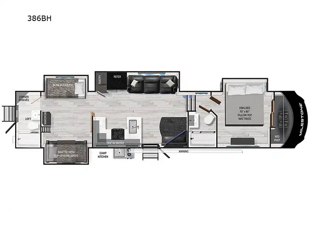Discover the ultimate in comfort and adventure with the 2023 Heartland Milestone 386BH Fifth Wheel! Perfect for families or groups of friends, this spacious RV comfortably sleeps up to eight people, making it your ideal home away from home. Whether you're planning a weekend getaway or an extended road trip, the Milestone 386BH offers the perfect blend of luxury and practicality.