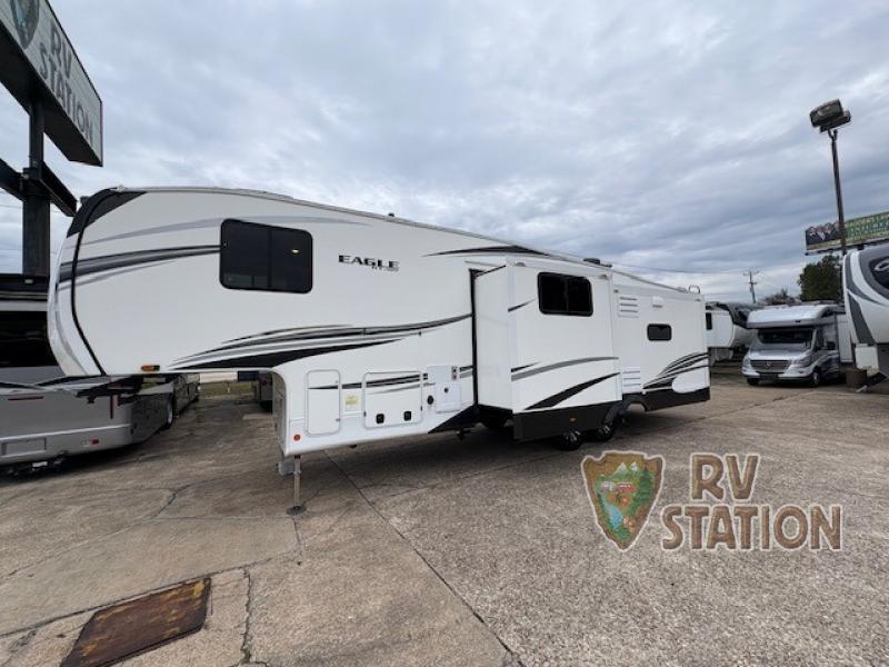 Discover the ultimate in comfort and adventure with the 2023 Jayco Eagle HT 31MB Fifth Wheel, a masterpiece of modern RV design. This luxurious fifth wheel is perfect for families or groups seeking a home away from home, offering ample space and top-notch amenities. With three expansive slide-outs, this RV transforms into a spacious retreat, providing room for everyone to relax and enjoy the journey. Measuring approximately 31 feet in length, the Eagle HT 31MB is designed for those who crave both comfort and mobility.