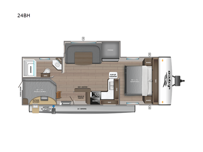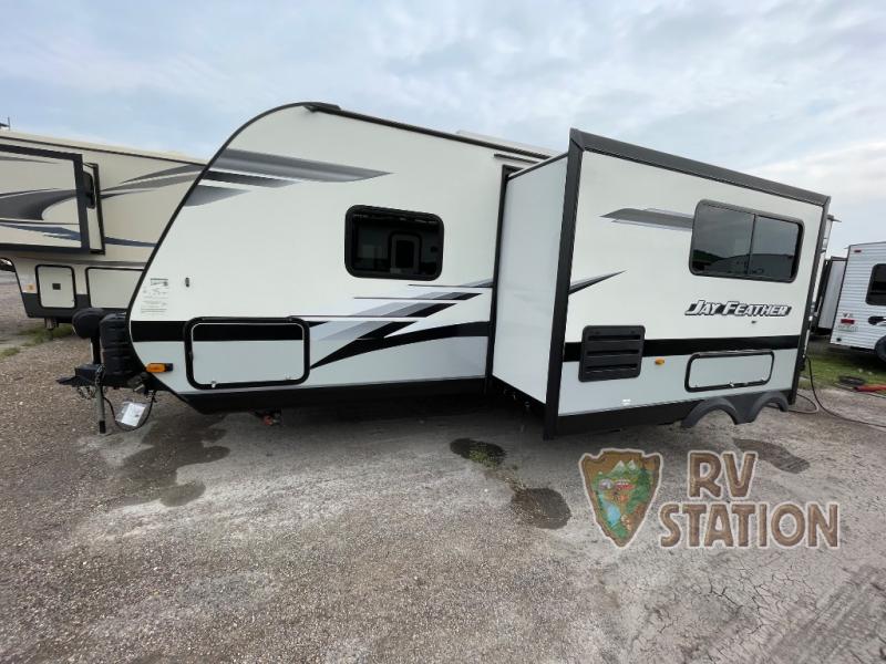 Introducing the 2023 Jayco Jay Feather 24BH Travel Trailer, a perfect blend of comfort, style, and functionality for your next adventure. This meticulously designed travel trailer offers a spacious and inviting interior, thanks to its single slide-out feature, which maximizes living space without compromising on mobility. With a length of 25 feet, this travel trailer is expertly crafted to provide a seamless towing experience while ensuring ample room for relaxation and entertainment.
