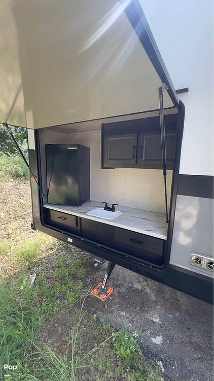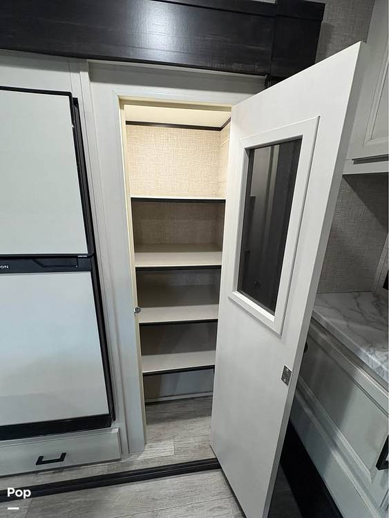 Inside, you'll find a meticulously crafted interior that combines functionality with style. The spacious living area is perfect for relaxation and entertainment, featuring plush seating and a state-of-the-art entertainment system. The fully equipped kitchen boasts modern appliances, ample counter space, and abundant storage, making meal preparation a breeze. The dining area is ideal for family meals or game nights, fostering a sense of togetherness during your travels. Additionally, the well-appointed bathroom offers all the conveniences of home, ensuring comfort and privacy on the road.