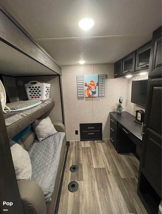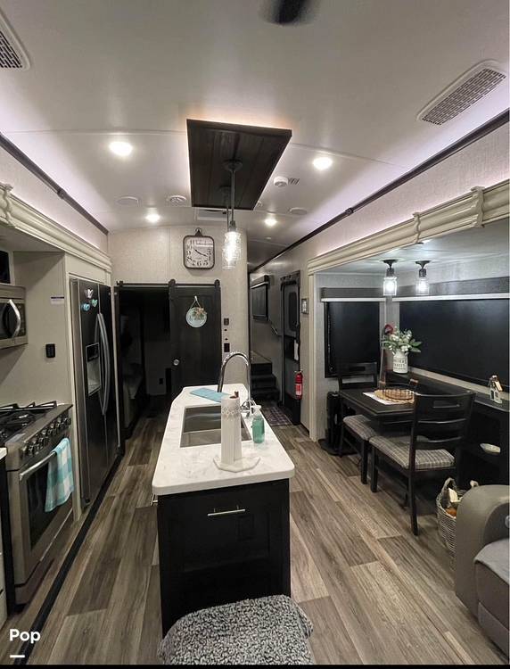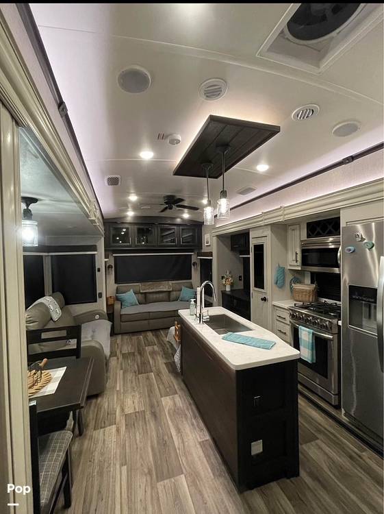 Step inside to discover a meticulously crafted interior that blends modern aesthetics with practical design. The North Point 377RLBH features a well-appointed living area, complete with plush seating and state-of-the-art entertainment options, perfect for relaxing evenings. The kitchen is equipped with high-quality appliances and ample storage, allowing you to prepare meals with ease. The RV’s thoughtful layout includes a dedicated bunkhouse, providing privacy and comfort for all occupants, while the master suite offers a serene retreat with its own luxurious amenities.