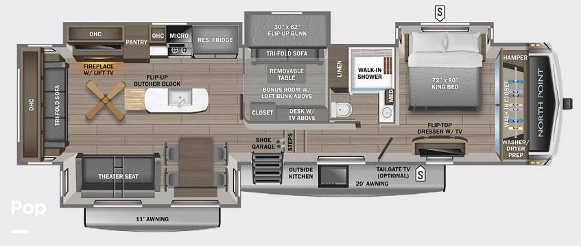 The Jayco North Point 377RLBH doesn't just offer comfort; it also provides practicality with plenty of storage solutions and user-friendly features. The master bedroom is a peaceful retreat with a comfortable bed and ample wardrobe space, while the bathroom offers a spacious shower and all the amenities you need. With its robust construction and advanced technology, this fifth wheel is built to handle any adventure you embark on. Whether you're exploring the great outdoors or enjoying a weekend getaway, the 2023 Jayco North Point 377RLBH is your ticket to unforgettable experiences.