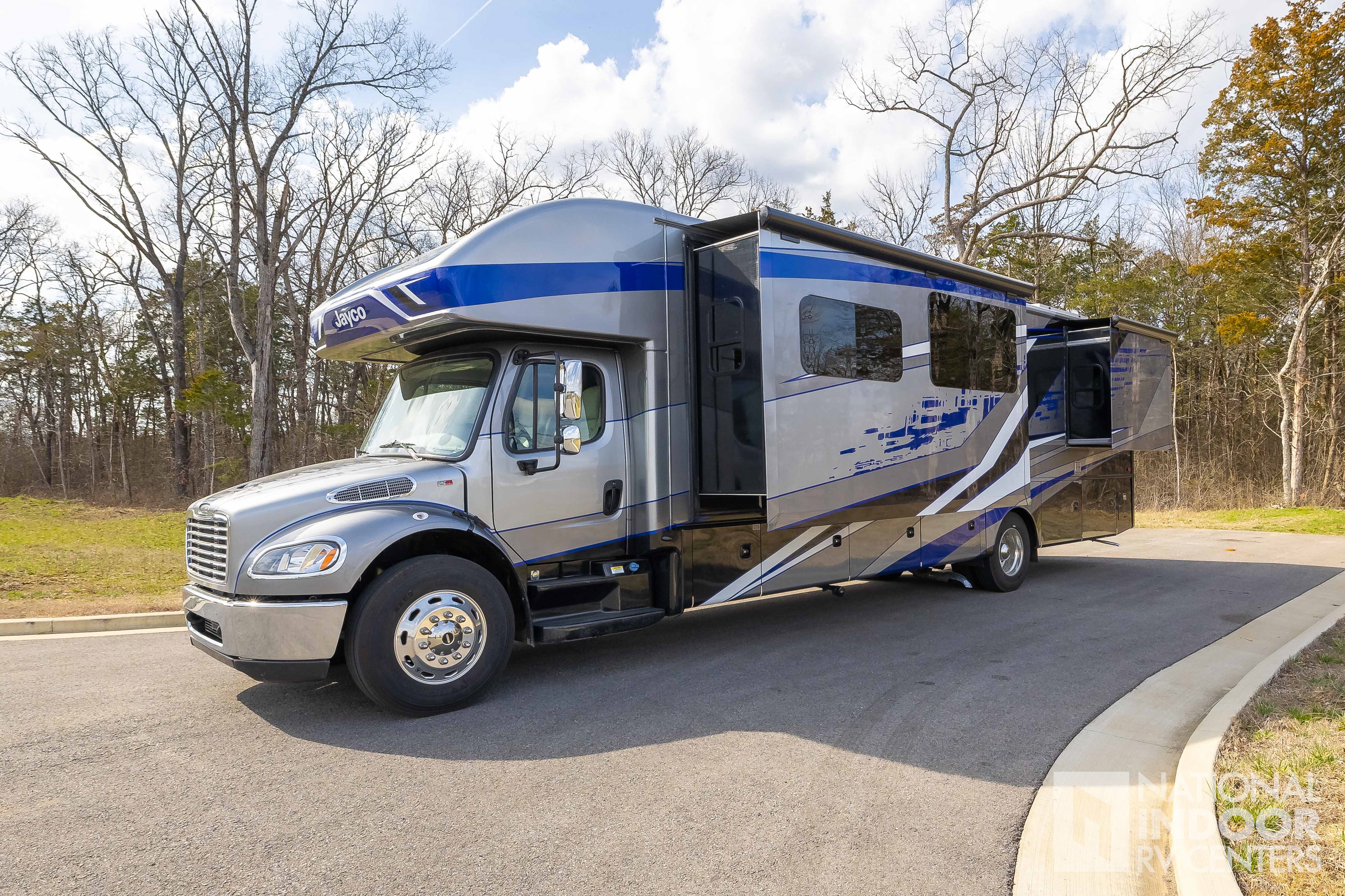 Measuring 33 feet in length, the Jayco Seneca 37M offers a well-thought-out floor plan that maximizes every inch of space. The interior is equipped with high-quality furnishings and modern amenities, ensuring a comfortable stay wherever you go. The kitchen is fully equipped with top-of-the-line appliances, making meal preparation a breeze. The living area is designed for relaxation, with plush seating and a state-of-the-art entertainment system. The bedroom offers a serene retreat with a comfortable bed and plenty of storage space for all your belongings.