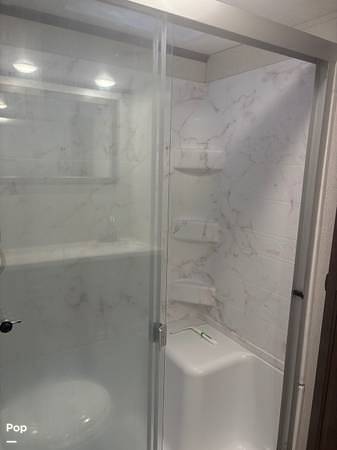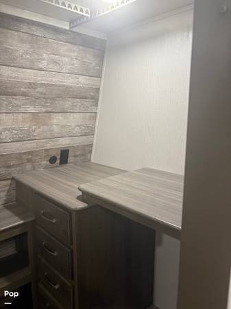 Step inside to discover a thoughtfully designed interior that maximizes space and convenience. The Cougar features a well-appointed kitchen equipped with modern appliances, including a refrigerator, stove, and microwave, making meal preparation a breeze. The living area is designed for relaxation, with plush seating and a state-of-the-art entertainment system. The master bedroom offers a cozy retreat with a comfortable queen-sized bed, while additional sleeping accommodations include a convertible sofa and a dinette that transforms into a bed, ensuring everyone has a restful night's sleep.