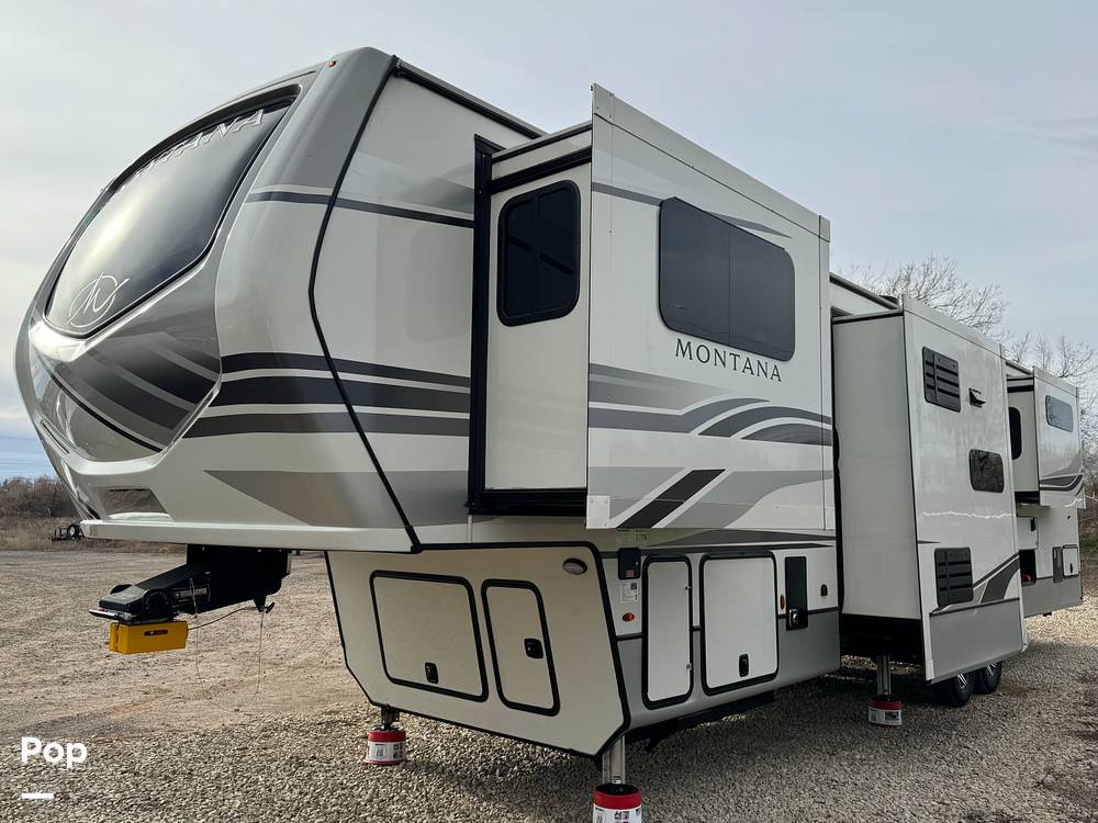 The Montana 3761FL doesn't skimp on the essentials either. It boasts a spacious bathroom with all the amenities you need, and the sleeping quarters are designed for maximum comfort. With its sleek design and top-notch features, this RV is not just a vehicle; it's a lifestyle upgrade. Whether you're hitting the open road or setting up camp in your favorite spot, the Keystone Montana 3761FL is your ticket to unforgettable adventures. Don't miss out on this opportunity to own a piece of luxury on wheels!