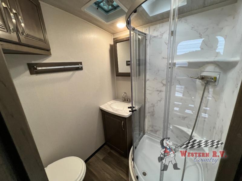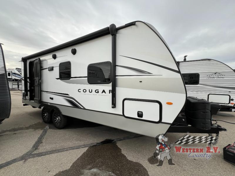 The Cougar Half-Ton 22RBS features a single slide-out, significantly enhancing the interior space to create a welcoming and spacious environment. This model is thoughtfully designed to accommodate up to four people, making it perfect for small families or couples seeking adventure. The interior layout is optimized for convenience and comfort, featuring a well-appointed kitchen, a cozy dining area, and a comfortable sleeping arrangement. The high-quality finishes and modern amenities ensure a luxurious experience, whether you're on a weekend getaway or an extended road trip.